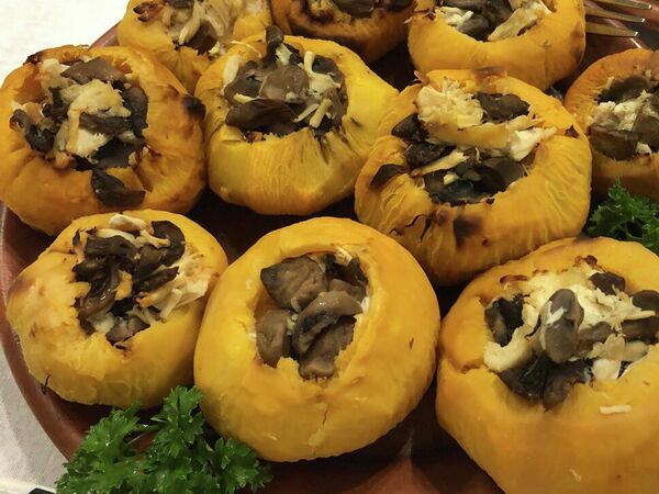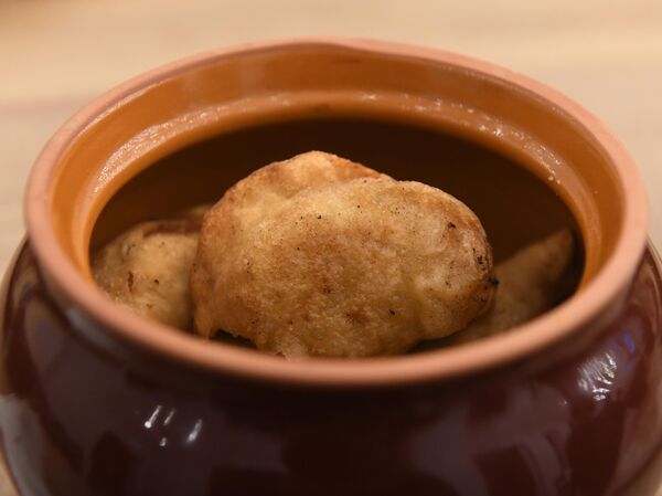 Кундюмы с грибами и сарацинским пшеном (рисом), запеченные в русской печи© РИА Новости / Кирилл Каллиников