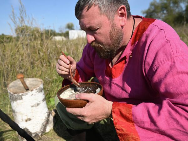 © РИА Новости / Кирилл КаллиниковПомимо репы парили также тыкву, морковь и свеклу. А чтобы сохранить урожай на зиму, делали вяленицу, то есть сушили фрукты и овощи. Из калины, шиповника и боярышника варили узвар — насыщенный концентрированный компот. А из дикого терна, который и сегодня растет на Куликовом поле, делали пирожки с терпкой начинкой.Традиция оживаетСейчас сотрудники музейного комплекса «Куликово поле» реконструируют старинные рецепты XIV-XVIII веков.Заведующая отделом питания музея «Куликово поле» Ольга Исаева призналась, что одной из главных трудностей в реконструкции становится «зависимость» от вкуса поваренной соли. Дело в том, что оригинальные блюда XIV-XVII веков почти не солили. Поэтому аутентичные щи, каша или хлеб могут показаться современному человеку непривычно пресными. Чтобы сделать историю доступнее для современного гостя, повара слегка адаптируют блюда для широкой аудитории и немного подсаливают.Сегодня каждый желающий может посетить лекции-дегустации и кулинарные мастер-классы или попробовать исторические обеды в музее «Куликово поле», а в будущем это можно будет сделать и в музейном комплексе «Русское поле».